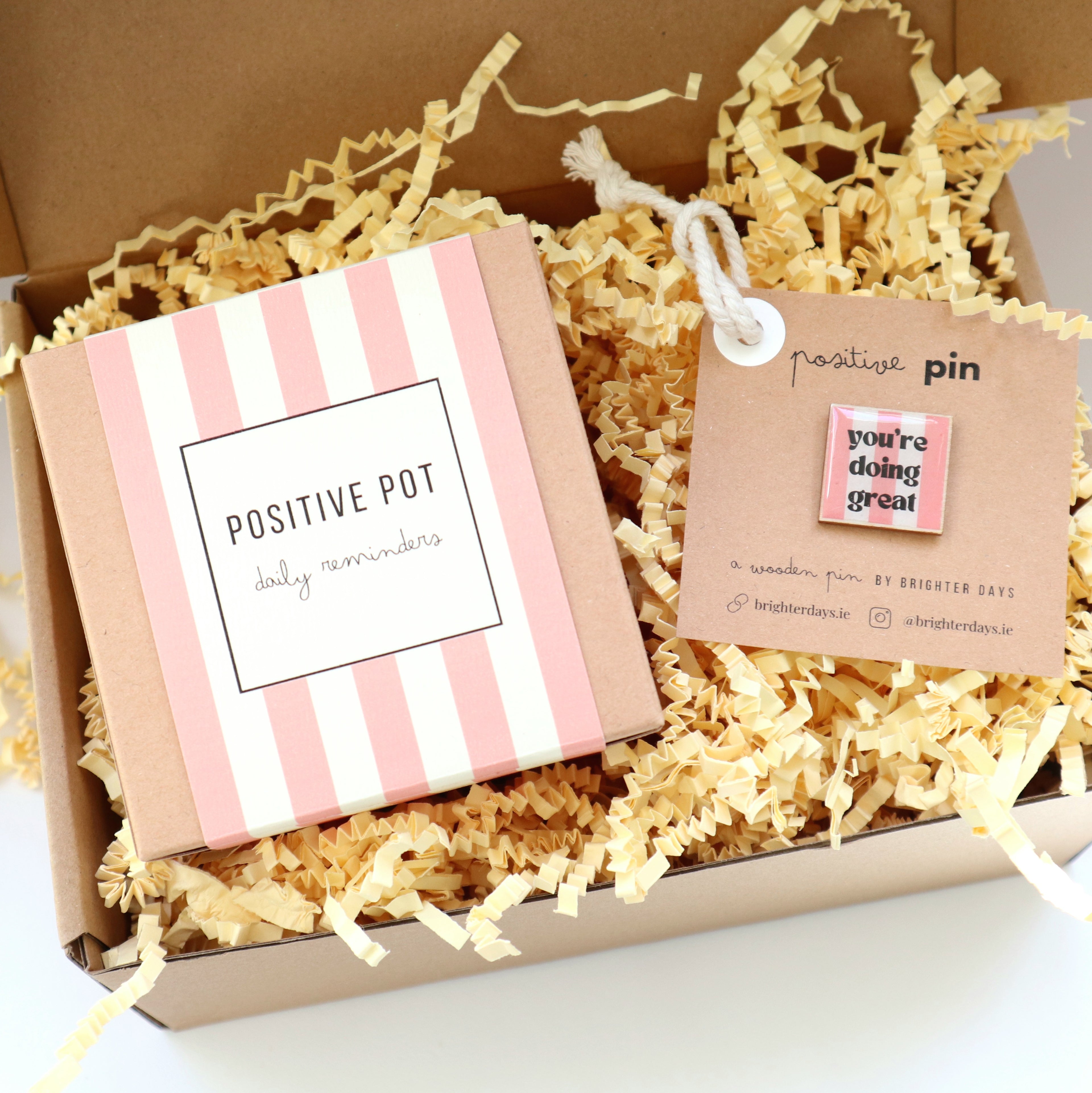 Simple, uplifting bundles for every kind of day. Each box includes a mix of Little Moments cards, Positive Pots, Pins, and Kids Create packs — all chosen to make someone smile or feel supported. Ideal for gifting, lifting someone up, or treating yourself to something small but meaningful.