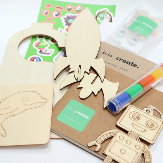Open-ended, eco-friendly craft fun — no rules, just imagination! Every pack helps kids create, explore, and discover what makes their ideas shine.
