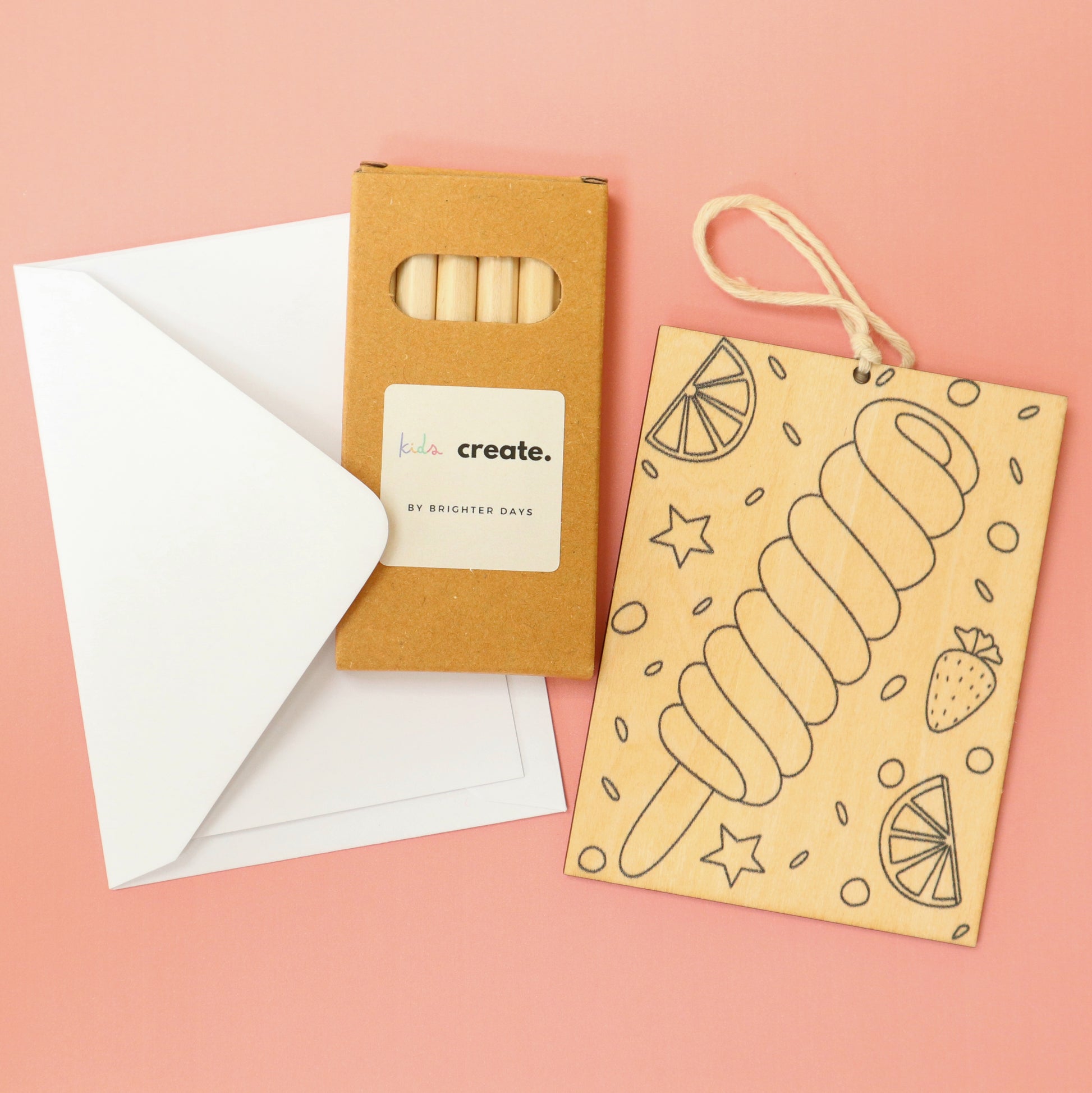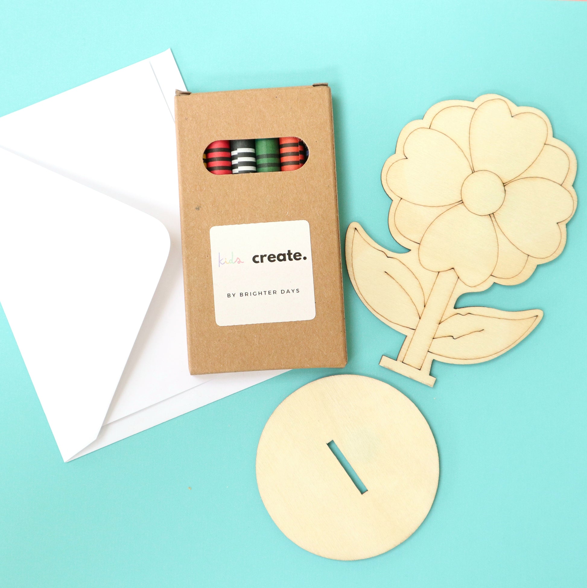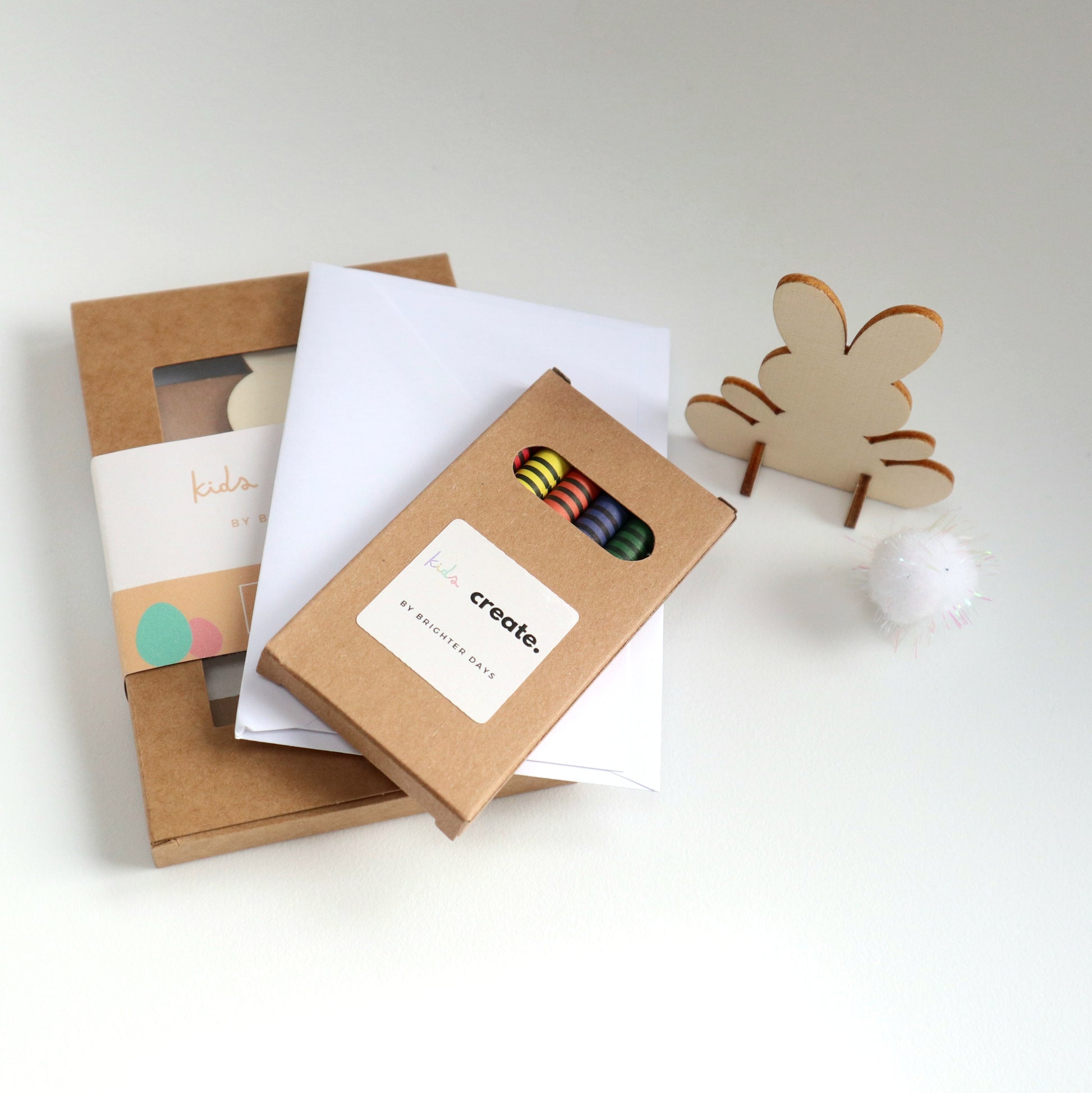 Kids Create Minis are thoughtfully designed little creative sets that give children the freedom to make something their own. Each mini box includes a wooden craft piece to decorate, a blank mini card and envelope, and colouring materials — everything needed for a small but meaningful creative moment.